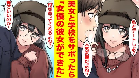 【漫画】女優にデートに誘われて学校をサボったら告白されて付き合うことになった。美女「デートしよ?」俺「人気女優だよね?」美女「付き合ってくれるよね?」俺「逆にいいのかよ…」【胸キュン漫画】【恋愛漫画】